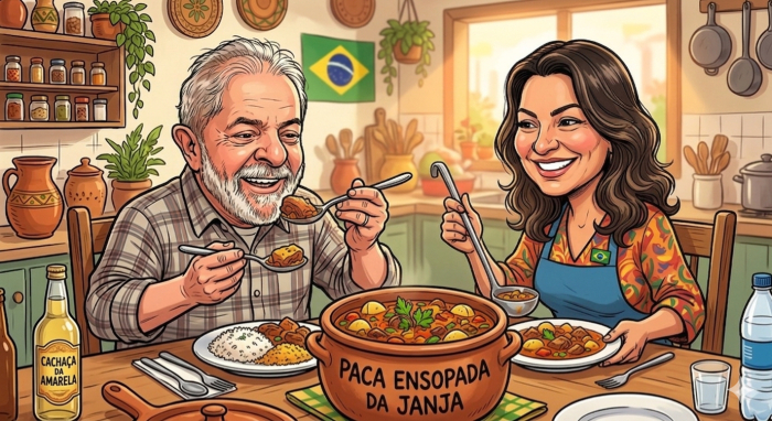Em meio a um Brasil onde milhões de famílias seguem apertadas para fechar as contas do mês, o presidente Lula resolveu exibir mais um retrato do seu distanciamento da realidade do povo: publicou nas redes sociais um vídeo em que aparece a sua esposa Janja, preparando uma paca ensopada.