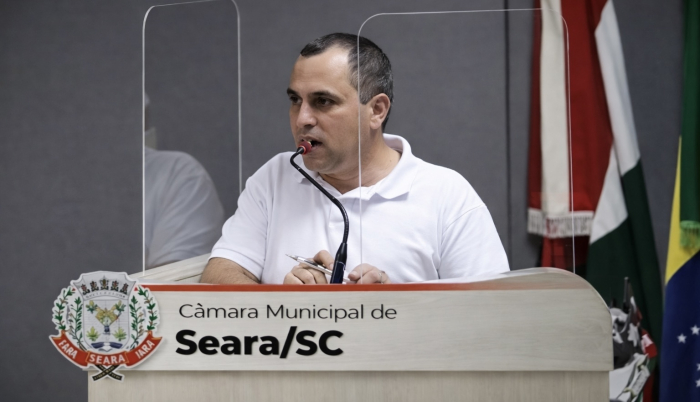 Na tribuna, prefeito aposta no discurso do desenvolvimento para defender o Avança Seara - Foto: Reprodução Sempre defendi que município que quer crescer precisa parar de pensar pequeno. Obras estruturantes não podem ficar eternamente presas no discurso da “falta de caixa”.