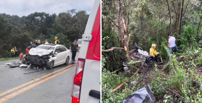 Batida frontal entre Jetta e Sandero deixou três vítimas fatais e mobilizou equipes de resgate aéreo e terrestre