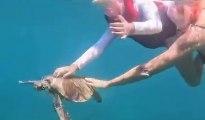 Uma moradora de Florianópolis foi multada em R$ 10 mil após tocar em uma tartaruga-marinha durante um banho de mar em Fernando de Noronha (PE). O caso foi registrado em um vídeo publicado nas redes sociais, no qual a mulher e o filho aparecem passando a mão no animal.