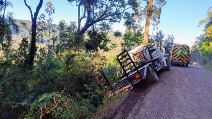 O acidente ocorreu na via que dá acesso à Linha Pingador. O motorista foi resgatado pelos Bombeiros Voluntários e encaminhado ao Hospital de Irani para avaliação médica. A criança, que também estava no veículo, recebeu atendimento no local e não apresentava ferimentos graves.