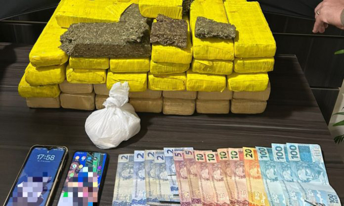 Durante uma ação de monitoramento, os policiais abordaram um GM Astra e encontraram no interior do veículo 22 quilos de maconha e 202 gramas de cocaína.
