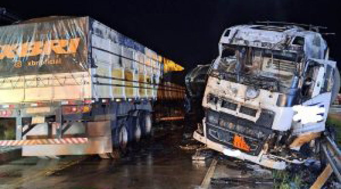 Um grave acidente envolvendo duas carretas foi registrado na noite desta terça-feira, 30 de setembro, por volta das 19h, na BR-163, próximo ao elevado de entrada de São José do Cedro. A colisão resultou em um incêndio de grandes proporções, já que um dos veículos transportava aproximadamente 48 mil litros de etanol.