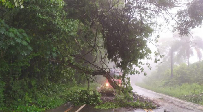 Chuva intensa provocou queda de três árvores e bloqueou a rodovia na manhã desta sexta-feira