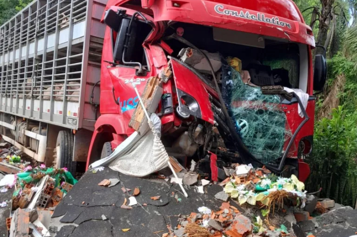 A carga viva permaneceu intacta, e os animais foram transferidos para outro veículo. Os danos ao caminhão foram classificados como de média monta.
