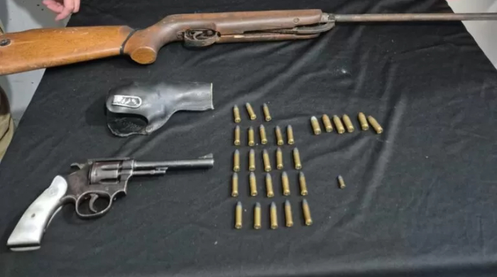Arma e munições foram localizadas em residência de São Miguel do Oeste - Foto: Reprodução A Polícia Militar prendeu um homem de 24 anos na noite deste domingo, 01 de janeiro, após localizar uma arma de fogo e munições escondidas em uma residência no Centro de São Miguel do Oeste. A ocorrência teve início por volta das 21h, a partir de uma denúncia de ameaça envolvendo um casal.