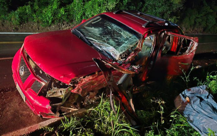 A colisão envolveu um caminhão e uma caminhonete Nissan Frontier, ambos com placas de Chapecó - Foto: Reprodução Um grave acidente de trânsito foi registrado na noite desta segunda-feira, 22 de dezembro, na BR-282, no trecho entre os municípios de Xaxim e Cordilheira Alta. A colisão envolveu um caminhão e uma caminhonete Nissan Frontier, ambos com placas de Chapecó, e resultou em uma morte.