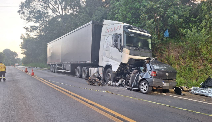 Acidente ocorreu na madrugada desta terça-feira, 23 de dezembro - Foto: Reprodução Um grave acidente de trânsito resultou na morte de um jovem na madrugada desta terça-feira, 23 de dezembro, na rodovia SC-355, em Fraiburgo. A colisão envolveu um carro de passeio e um caminhão carreta, e a vítima morreu ainda no local.