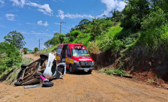 As ocupantes estavam com sinais vitais estáveis - Foto: Reprodução Duas mulheres ficaram feridas em um acidente de trânsito registrado por volta das 17h desta terça-feira na SC-154, na saída do município de Itá, no bairro São Roque. As equipes de socorro foram acionadas pela Central de Operações e, ao chegarem ao local, encontraram um Ford Ka branco que havia saído da pista, capotado e descido um barranco, permanecendo apoiado sobre duas rodas.