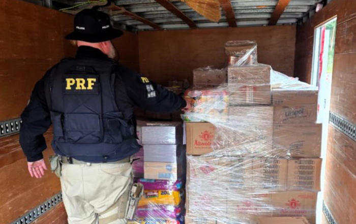 Durante a fiscalização, os policiais abriram o compartimento de carga e constataram que não havia cofre ou qualquer tipo de isolamento que impedisse o contato entre alimentos e produtos perigosos. No interior do baú foram encontrados itens como produtos de limpeza, soda cáustica, inseticidas e resinas inflamáveis armazenados juntamente com balas, chocolates, café, biscoitos, sucos, água de coco e outros alimentos.