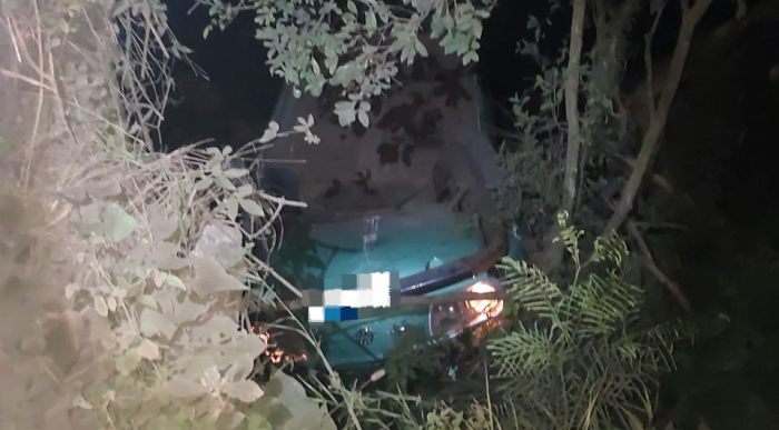 De acordo com as informações, o veículo saiu da pista, caiu de uma ponte de aproximadamente três metros de altura e, na sequência, capotou, parando entre o rio e um barranco.