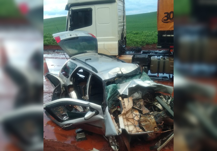 O motorista ficou gravemente ferido e acabou preso às ferragens - Foto: Reprodução Um grave acidente de trânsito foi registrado na tarde desta segunda-feira, 23 de março, no município de Abelardo Luz. A ocorrência foi atendida por volta das 17h pelo Corpo de Bombeiros Militar e envolveu uma colisão frontal entre um carro e uma carreta.