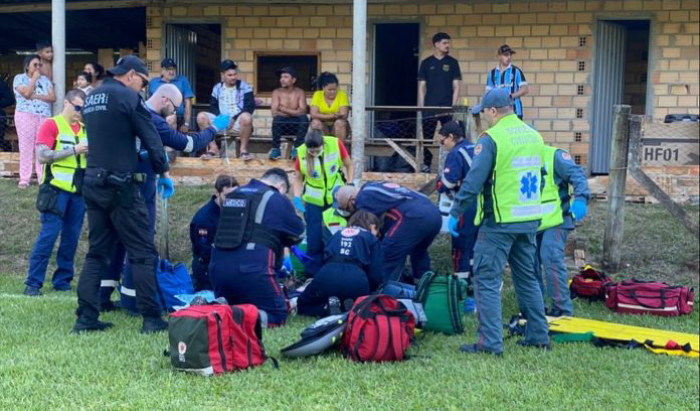 A aeronave da Polícia Civil, tripulada por policiais do SAER-FRON e profissionais do SAMU Aeromédico, foi acionada para o atendimento. Ao chegarem ao local, as equipes encontraram a vítima em parada cardiorrespiratória e iniciaram imediatamente as manobras de reanimação.