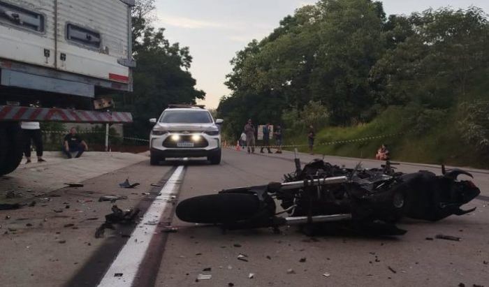 As equipes de socorro foram acionadas por volta das 17h40. De acordo com as informações levantadas, a colisão envolveu uma motocicleta e um caminhão.
