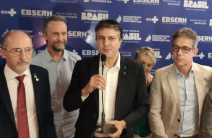 Ministro da Educação, Camilo Santana - Foto: Reprodução O ministro da Educação, Camilo Santana, esteve na tarde desta terça-feira, 09 de dezembro, no Campus Chapecó da Universidade Federal da Fronteira Sul (UFFS) para assinar o Acordo de Cooperação Técnica (ACT) entre a instituição e a Empresa Brasileira de Serviços Hospitalares (Ebserh). O ato formaliza o início do processo de construção do Hospital Universitário da UFFS, considerado pelo ministro como “o registro de nascimento do compromisso do Governo Federal com a universidade e com a criação de um hospital público para a região”.