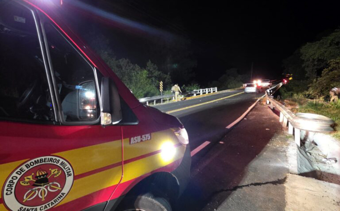 De acordo com os bombeiros, o veículo seguia no sentido São Carlos–Palmitos quando o motorista perdeu o controle, saiu da pista e caiu da ponte sobre o rio Barra Grande. Ao chegar ao local, a guarnição encontrou o condutor fora do caminhão, às margens da rodovia, consciente e orientado, cercado por populares.