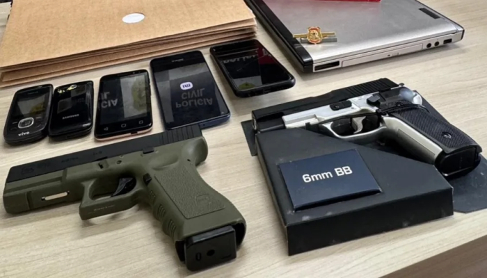 Durante o cumprimento da ordem judicial, foram apreendidos cinco aparelhos celulares, um notebook, diversas pastas contendo contratos e documentos pessoais de possíveis vítimas, além de um broche do Poder Judiciário Federal. No local, também foram encontradas duas pistolas de airsoft, sendo uma delas com aparência muito semelhante à de uma pistola Glock.