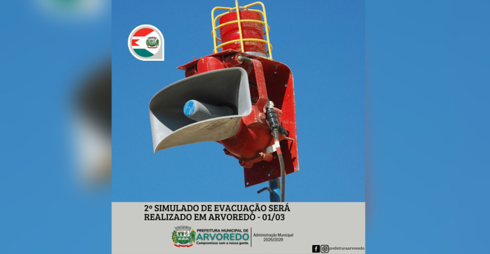 Durante o simulado, serão acionadas sirenes e haverá mobilização das equipes responsáveis - Foto: Reprodução A Prefeitura Municipal de Arvoredo, por meio da Coordenadoria Municipal de Proteção e Defesa Civil, realizará no dia 1º de março de 2026, a partir das 8h da manhã, o 2º Simulado de Evacuação do município.