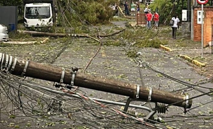 Ventos intensos derrubaram árvores e postes, causando danos na rede elétrica e bloqueio de vias