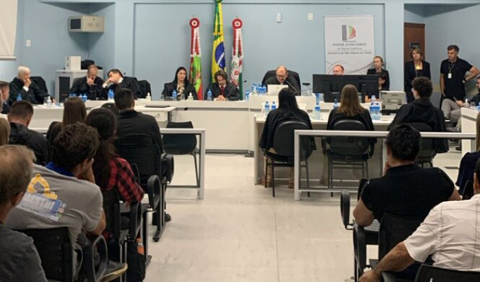 A pena foi fixada em oito anos de reclusão - Foto: Reprodução Uma sessão do Tribunal do Júri realizada na última sexta-feira, 27 de fevereiro, na comarca de São Miguel do Oeste, resultou na condenação de um policial militar por tentativa de homicídio. A pena foi fixada em oito anos de reclusão, em regime inicial fechado, além do pagamento de indenização à vítima no valor de R$ 50 mil, acrescido de correção monetária.