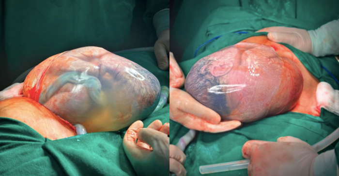 O fenômeno ocorre quando o bebê nasce ainda envolto pela bolsa amniótica, o que é considerado raro na medicina — estima-se que aconteça apenas em 1 a cada 80 mil nascimentos.