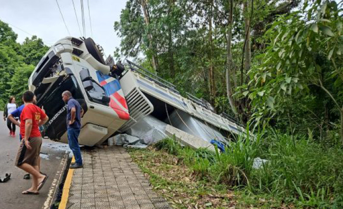 Equipes foram acionadas para sinalizar a área e avaliar a situação. As causas do tombamento ainda não foram identificadas.