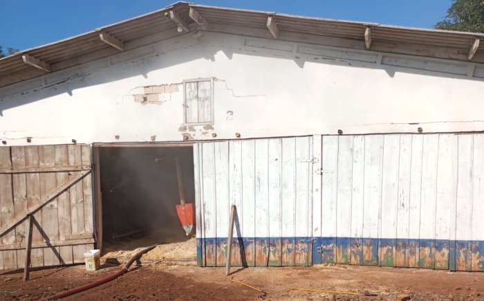 A ocorrência foi registrada por volta das 7h30, quando a guarnição foi acionada para atender o incêndio em um galpão. Ao chegar no local, os bombeiros constataram que o fogo estava concentrado na cama do aviário, atingindo uma área total de aproximadamente 2 mil metros quadrados.