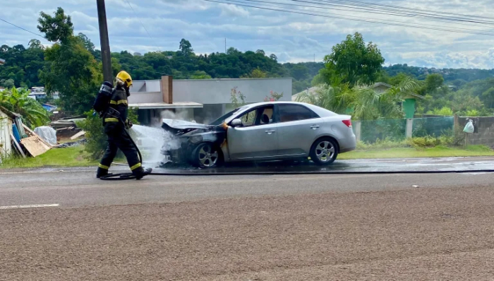 A ocorrência foi atendida por volta das 15h pela guarnição dos bombeiros de Itá. Ao chegar ao local, os socorristas constataram que um Kia/Cerato prata estava completamente em chamas às margens da rodovia.