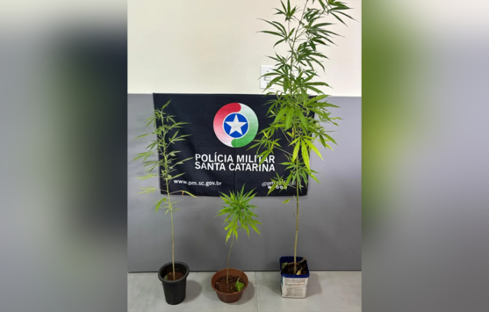 As mudas foram apreendidas e encaminhadas para os procedimentos legais cabíveis - Foto: Reprodução Na tarde desta sexta-feira, 16 de janeiro, a Polícia Militar apreendeu três pés de maconha em uma residência localizada no Bairro Industrial, no município de Seara.