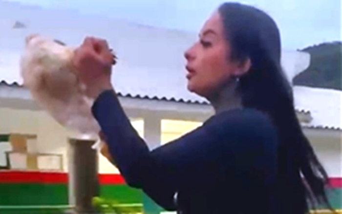 O vídeo também exibe a realização de um ritual com imolação de uma ave, além do uso de velas e outros elementos. Nas redes sociais, a autora afirmou que não deixou nenhum tipo de resíduo no local após o procedimento.
